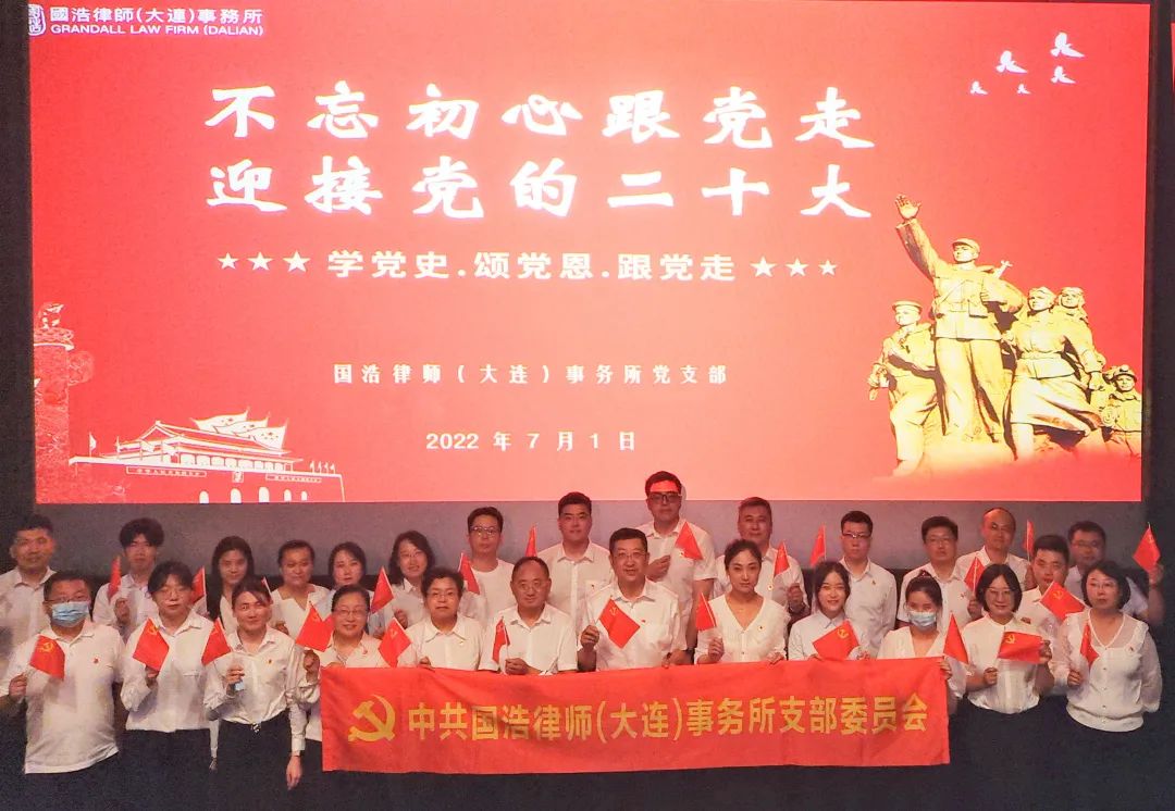 為深入學習宣傳貫徹習近平新時代中國特色社會主義思想和黨的十九屆六中全會精神, 2022年7月1日,國浩大連黨支部組織全體黨員、積極分子開展“不忘初心跟黨走·迎接黨的二十大”主題黨建活動。