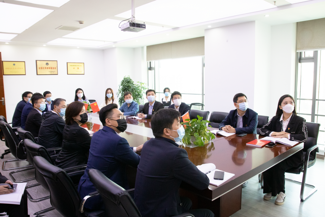 在國浩執行合伙人、國浩南京管理合伙人、主任馬國強的帶領下,國浩南京全體黨員律師、民主黨派代表和群眾代表集中觀看“中國共產黨第二十次全國代表大會開幕”直播,共同見證黨的二十大勝利召開。未能現場出席的人員也通過線上參會的方式參加了學習,確保國浩南京全體人員共同參與。