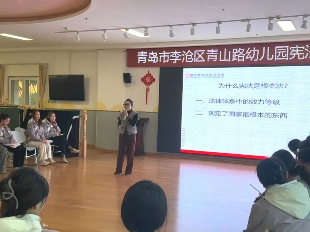 11月28日,國浩青島律師毛紅妍來到青島市李滄區永寧路幼兒園,為園內教職工開展了一場精彩紛呈的憲法日專題培訓。