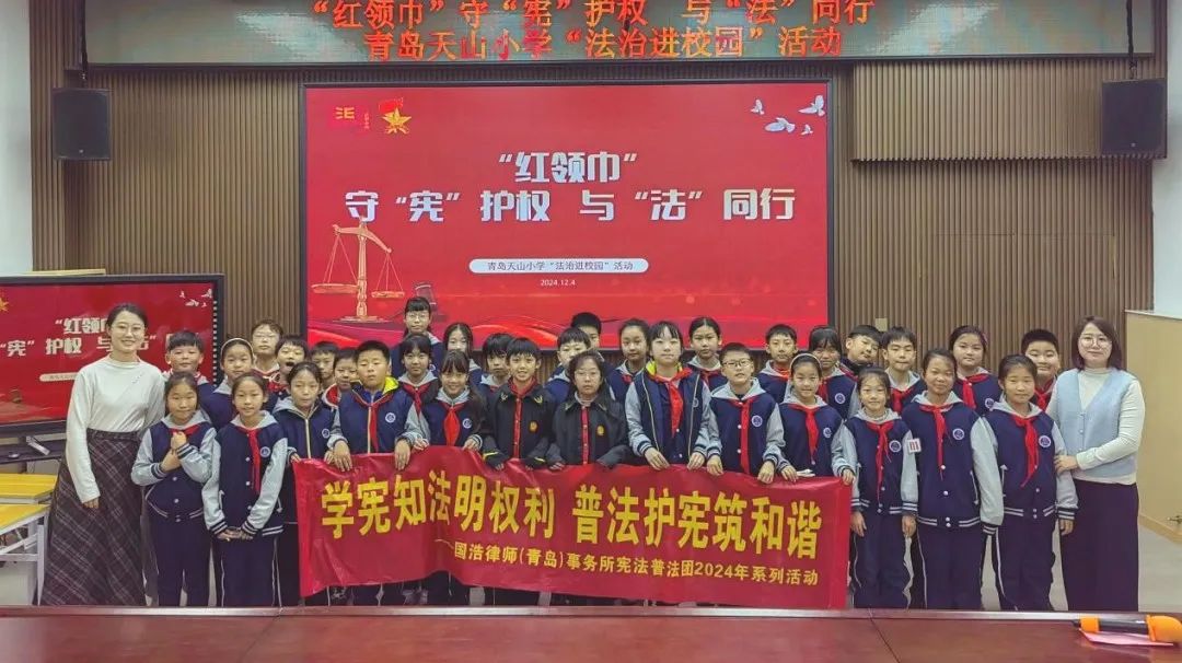 12月4日上午,國浩青島律師張苧予、林巧受邀來到青島天山小學參加憲法普法活動,并受聘為該校法治教育校外輔導員。
