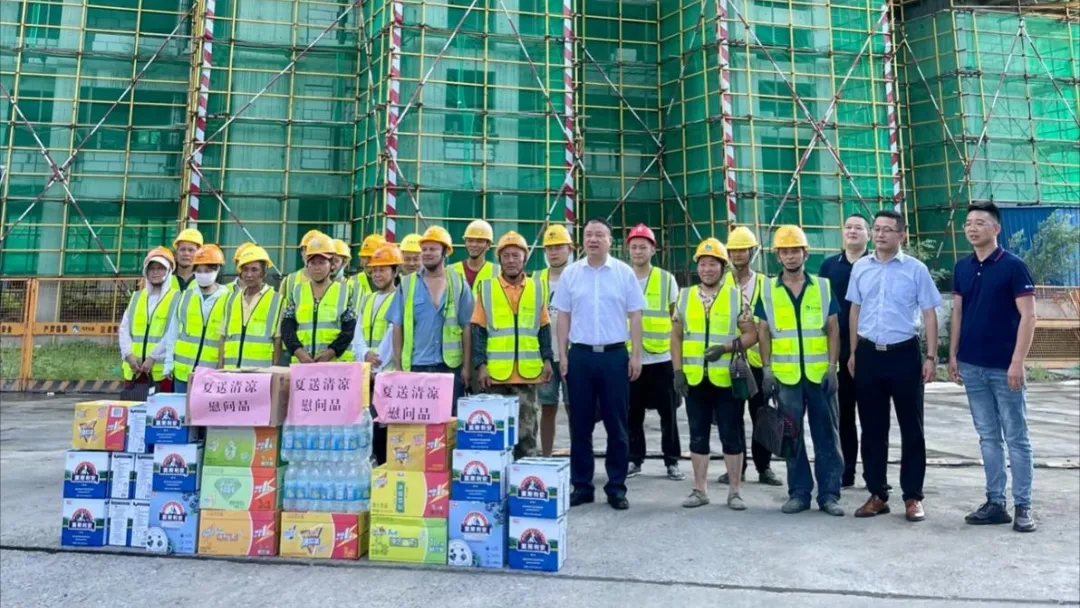 致敬高溫下的勞動者。國浩合肥黨支部于8月2日開展了“夏送清涼”慰問一線工人活動,國浩合肥黨支部青年委員、合伙人柯照華和合伙人趙寶、袁靳陪同巢湖市委常委、常務副市長朱海舟一行前往巢湖市芙蓉香頌項目工地,為工人們送上“夏日清涼大禮包”,向堅持奮戰在施工一線的建設者們致以誠摯問候。