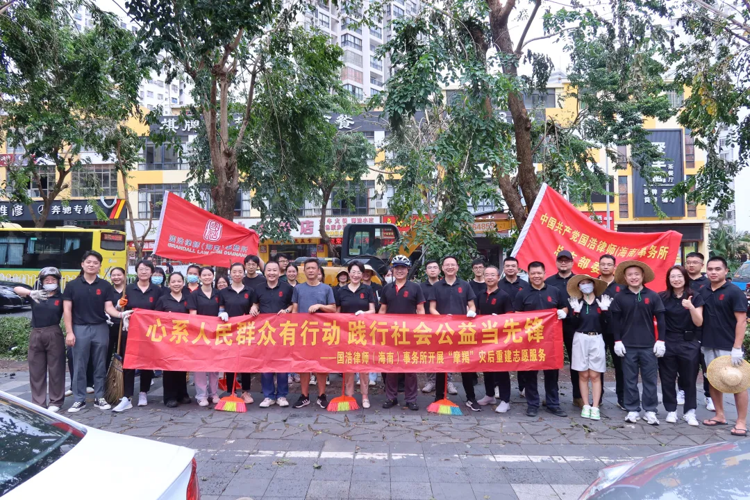 救災一線黨員在前。2024年9月,臺風“摩羯”侵襲海南,造成了嚴重的破壞,國浩海南黨總支迅速響應,發起關于開展志愿者行動、助力臺風“摩羯”災后秩序恢復的倡議書,組織國浩海南律師成立志愿者服務團,自愿投身到災后重建工作中,參與轄區道路清理、為受災群眾提供法律咨詢與援助、捐贈愛心物資等系列行動,充分展現了國浩海南律師的社會責任感和擔當精神。為確保受災群眾早日恢復正常的工作和生活秩序,國浩海南還積極籌集救災物資,向??谑薪鹳Q街道世貿社區捐贈水飲、方便面、八寶粥等急需物資120件。