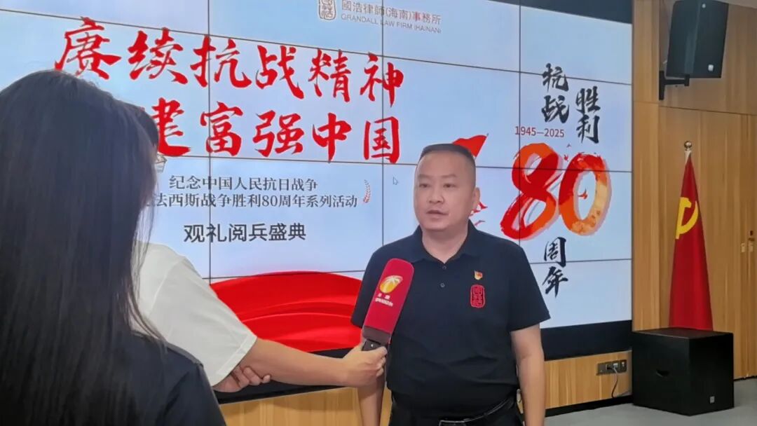 觀看九三閱兵,“此生無悔入華夏”的自豪感油然而生。國家發展成就舉世矚目,特別是歷史性解決了絕對貧困問題,彰顯了黨的領導和社會主義制度的優越性。未來,我們將繼續加強黨建引領所建,持續專研法律業務,為海南自貿港建設貢獻法治力量。