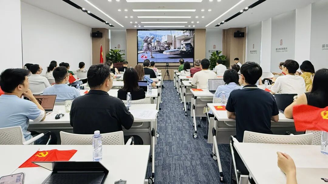 國浩貴陽黨支部組織開展了“圍坐品經典?閱兵揚國威”主題黨日活動,全體在所黨員、青年律師代表在國浩貴陽多功能會議室集中觀看了閱兵式直播。