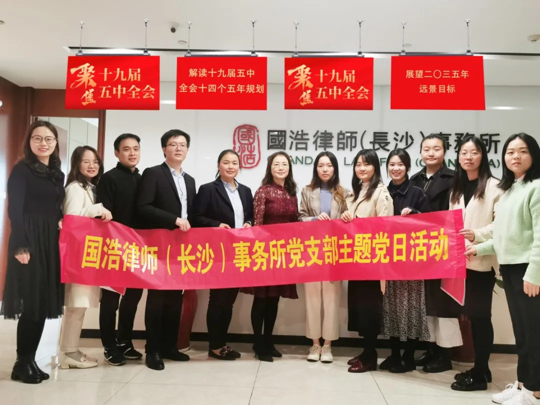 國浩長沙管理合伙人、黨支部書記李莉帶頭學習傳達黨的十九屆五中全會精神,與會黨員、入黨積極分子結合自身工作崗位,分享了學習心得,并達成了要把會議精神作為今后指導工作的強大思想武器和行動指南的共識。