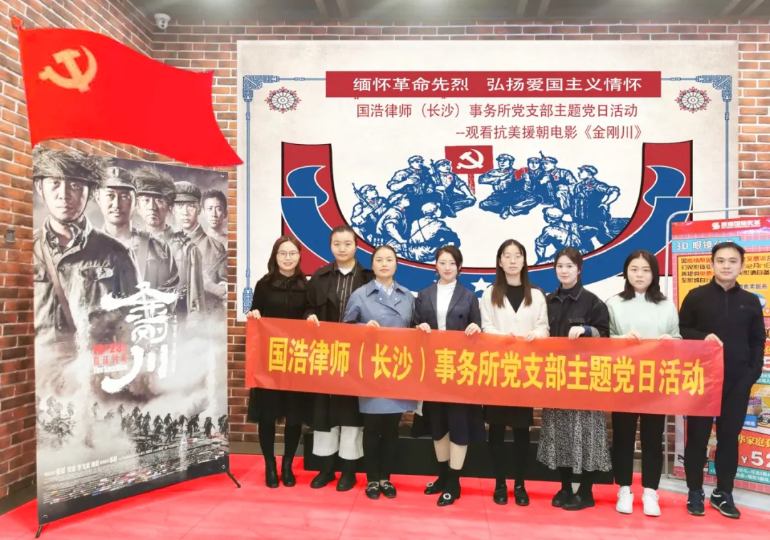 當天下午,為紀念中國人民志愿軍抗美援朝出國作戰70周年,銘記歷史、致敬英雄,國浩長沙黨支部還組織集體觀看了抗美援朝題材電影《金剛川》。李莉律師指出,要牢記崢嶸歷史,珍惜來之不易的和平。黨員律師紛紛贊同,并表示要牢記初心使命、堅定理想信念,為推進全面依法治國展現新作為,發揮法治在國家治理體系和治理能力現代化中的積極作用。