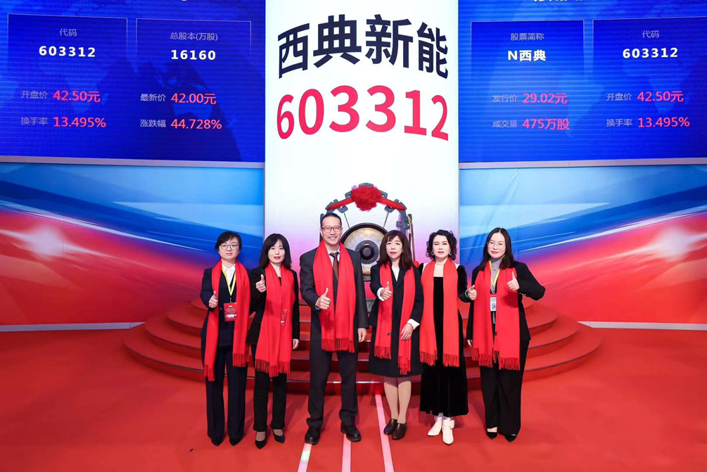 2024年1月11日,由國浩蘇州擔任發行人律師的蘇州西典新能源電氣股份有限公司成功在上海證券交易所主板發行上市,是2024年江蘇省首家A股上市公司。經辦律師為國浩蘇州合伙人葛霞青、胡菊、殷輝、吳旻,律師徐閑馨、石波、司婷婷等。